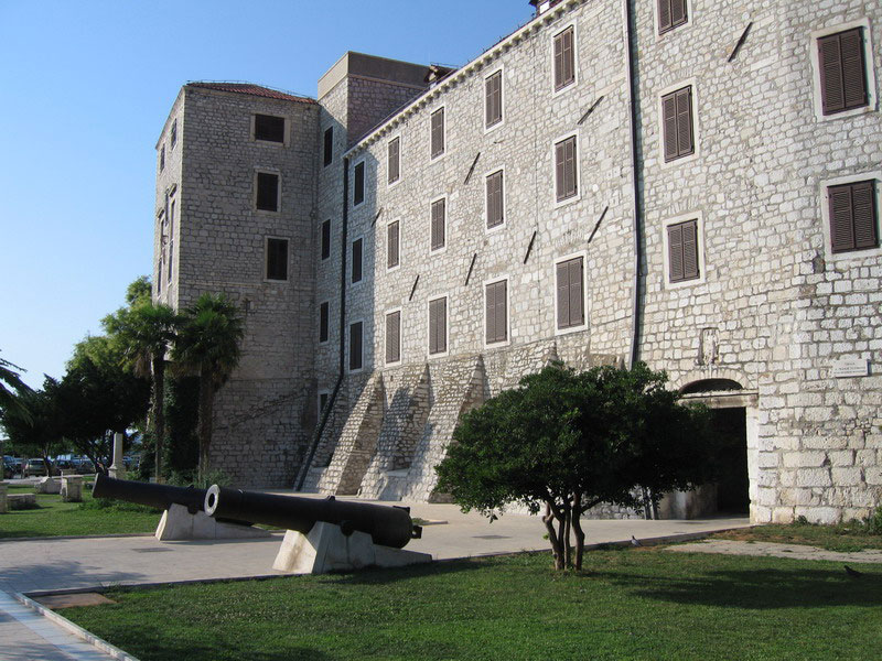 Kneževa palača nalazi se na obali, u staroj gradskoj jezri. Sačuvana su dva krila ovog nekoć mnogo većeg zdanja u kojemu je uredovao i boravio najviši predstavnik mletačke vlasti u komuni – gradski knez- kapetan. Po sredini južnog krila gotički je prolaz s gradskim vratima. Na zapadnom krilu okrenutom sakristiji katedrale, dvoja su vrata jednostavnih kamenih okvira. Godine 1975. dovršena je adaptacija Kneževe palače za potrebe smještaja Muzeja grada Šibenika. Biskupska palača (1439.-1441.) naslonjena je na katedralu sv. Jakova s morske strane.